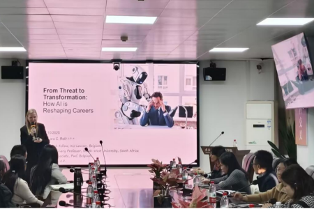 讲座伊始,Lara C. Roll研究员在讲座中指出人工智能的发展不仅带来了技术体系的革新,也引发了管理思想、组织模式与决策机制的系统性重构,对个体职业发展路径产生了根本性影响。在此背景下,Lara C. Roll研究员系统梳理了AI时代职业发展的新图景,呼吁企业和个人共同应对挑战,把握机遇,构建更具韧性与前瞻性的职业发展策略。