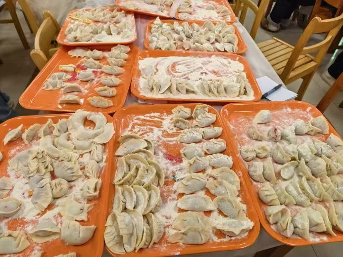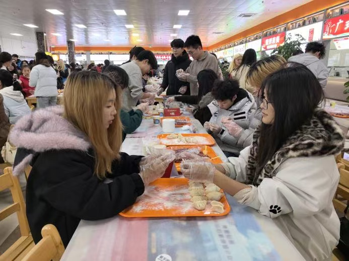 现场围绕“三暖”核心,设置“暖手”“暖胃”两大手工体验区。同学们在志愿者与后勤团队的协助下,亲手包制寓意团圆的饺子、熬煮醇香手工奶茶、串制晶莹剔透的冰糖葫芦。从茶乳交融的甜蜜,到面皮包裹的祝愿,再到糖浆凝固的脆甜,大家在动手创作中沉浸式体验着传统文化的温度与情感。当热腾腾的饺子出锅,搭配亲手制作的糖葫芦与奶茶,满足与欢笑也随香气弥漫至每个人心中。