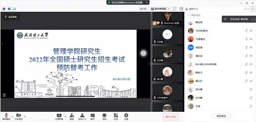 12月23日晚,taptap点点体育辅导员曾珠主持召开了公司研究生2022年全国研究生招生考试防替考工作大会的线上会议,各班班长作为代表参加此次会议。曾珠老师带领大家学习了关于防替考的相关资料后,将具体工作安排传达给各位班长。具体工作包括12月24日和25日晚进行全院的查寝工作;12月25日上午9: 00以班级为单位展开腾讯会议点名两项工作。