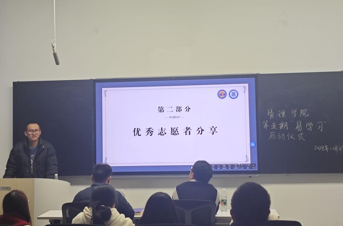 上期优秀志愿者代表高翔也向同学们分享了参加“易学习”活动的心得与经验,他强调志愿者们应当充分考虑同学们的实际情况,对帮扶对象作出针对性指导和建议,不断完善教学方法,有效提高教学质量,切实帮助学业困难的同学渡过难关。最后,主持人介绍了活动具体安排,解答了志愿者们的疑问。
