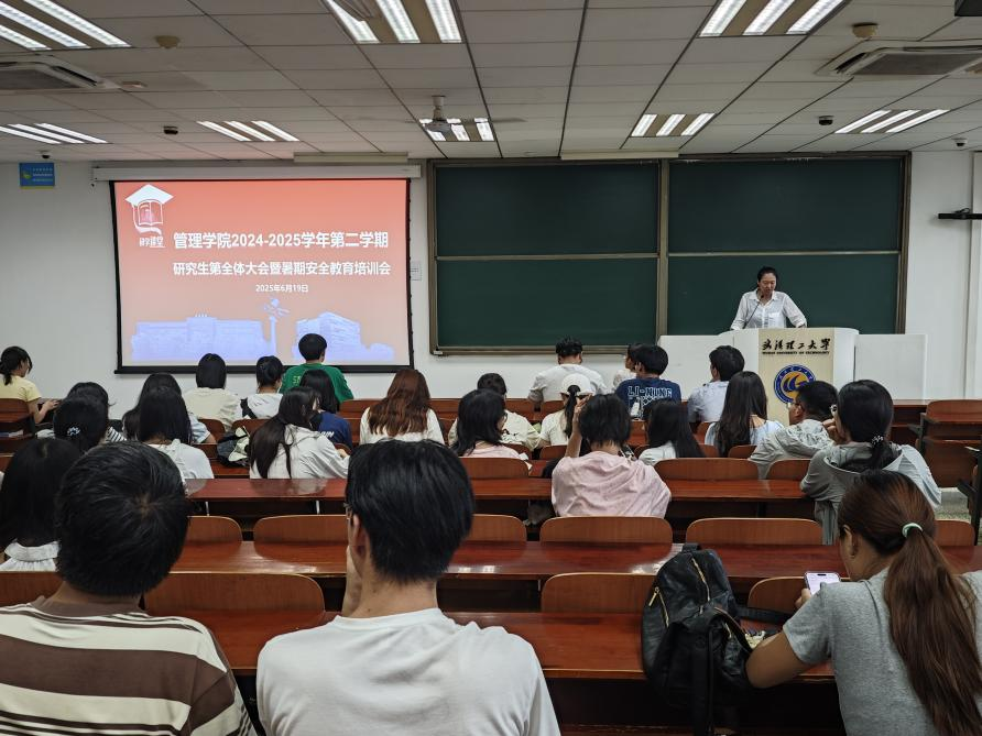 面向24级研究生,结合《研究生手册》相关规定,辅导员韩续冰宣贯了助管、助教、住研津贴发放政策及规范。为应对梅雨天气,韩老师围绕交通安全、自我防护、遇险救援、防疫防病等方面开展汛期安全教育。结合真实案例,韩老师分享了防诈反诈知识,要求大家莫贪小便宜、养成好习惯,努力提升防范意识。期末考试在即,韩老师结合《研究生手册》讲解了考试作弊行为与作弊处罚规定,要求所有同学务必做到积极备考与诚信应考。