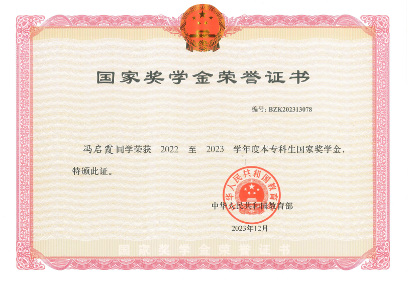 二十一载披星戴月,二十一载凯歌而行。千难万险浑不怕,守得云开见月明。从成功推免至南京大学继续深造再到荣获全校仅10位的最高荣誉——卓越奖学金,冯启霞已独立撰写论文两篇、省级国创立项两项、参与发明专利三项、团体标准两项、国家级奖项七项、省级奖项四项、获得中国国际老员工创新大赛国家银奖、全国高校商业精英挑战赛全国一等奖等等。